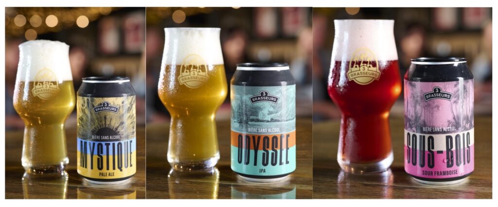 Il s’agit de la pale ale Mystique, de l’IPA Odyssée et de la sour à la framboise Sous-Bois, toutes élaborées par la brasserie belge De Proefe, la spécialiste reconnue de ce type de bière. À la dégustation, ces trois bières fraîches et désaltérantes manquent un peu de caractère et de puissance aromatique, surtout pour la pale ale et l’IPA, à peine amère, alors que la Sous-Bois tire mieux son épingle du jeu grâce au jus de framboise acidulé qui entre dans sa composition. Les trois recettes font appel à de la maltodextrine, hydrolyse de l’amidon limitant son caractère sucré.