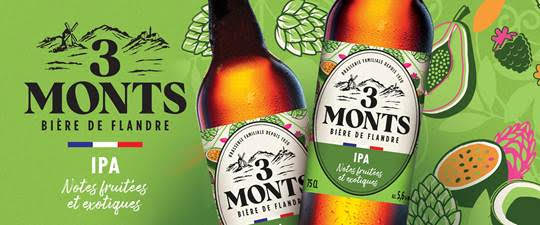 Sans fausses notes ni faux goûts, comme l’âcreté parfois désagréable de plusieurs IPA, c’est une jolie réussite de la brasserie. Cette IPA est conditionnée en boîte métal de 50 cl au prix conseillé de 1,95 €, mais aussi en bouteille de 75 cl surmontée de l’étrier en métal caractéristique de 3 Monts, au prix conseillé de 3,39 €.