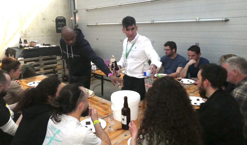Côté animations, l’ami Guirec Aubert (le régional du Salon) et le québécois Vladimir Antonoff ont fait le plein dans leurs ateliers d’initiation à la dégustation, avec la recherche d’accords entre les bières et les huîtres, les fromages, les chocolats, etc… De leur côté, des membres du CRAB (Collectif Rennais des Amateurs de Bières) faisaient la démonstration en direct des différentes étapes du brassage.